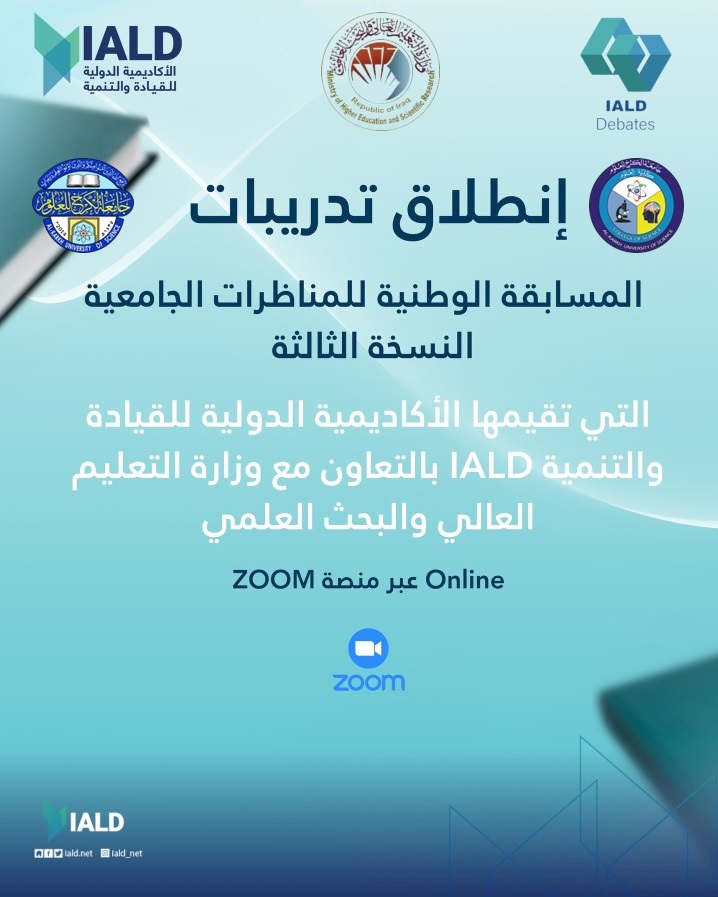 برعاية رئيس جامعة الكرخ للعلوم الاستاذ الدكتور جمعة سلمان جياد المحترم وباشراف عميد كلية العلوم الاستاذ الدكتور عدي هادي رؤوف المحترم ، تشارك كلية العلوم في الجامعة في المسابقة الوطنية للمناظرات الجامعية بنسخته الثالثة والتي تقيمها الأكاديمية الدولية للقيادة والتنمية (IALD) بالتعاون مع وزارة التعليم العالي والبحث العلمي Online وعبر منصة ZOOM وتهدف المسابقة إلى تمكين طلبة جامعتنا من مهارات التفكير النقدي والتحليل العميق وفنون الخطابة وبناء نخبة من العقول العراقية تتنافس في أكبر محفل فكري جامعي.