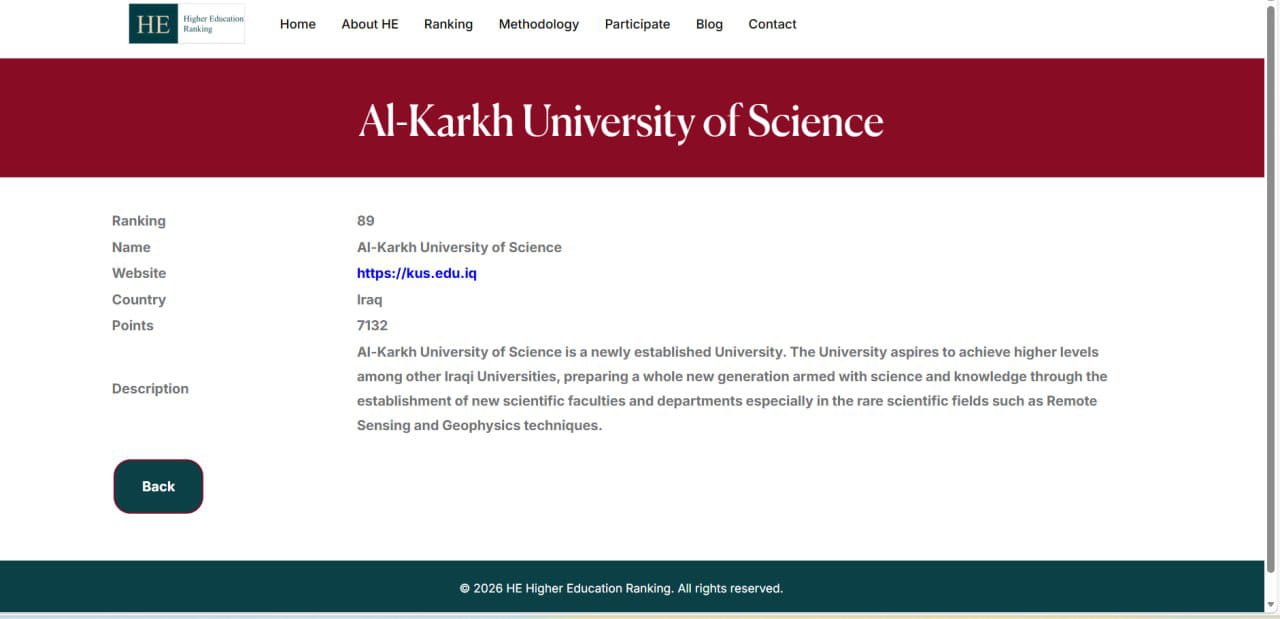 جامعة الكرخ للعلوم تسجل حضورًا مميزًا في تصنيف HE العالمي لعام 2026