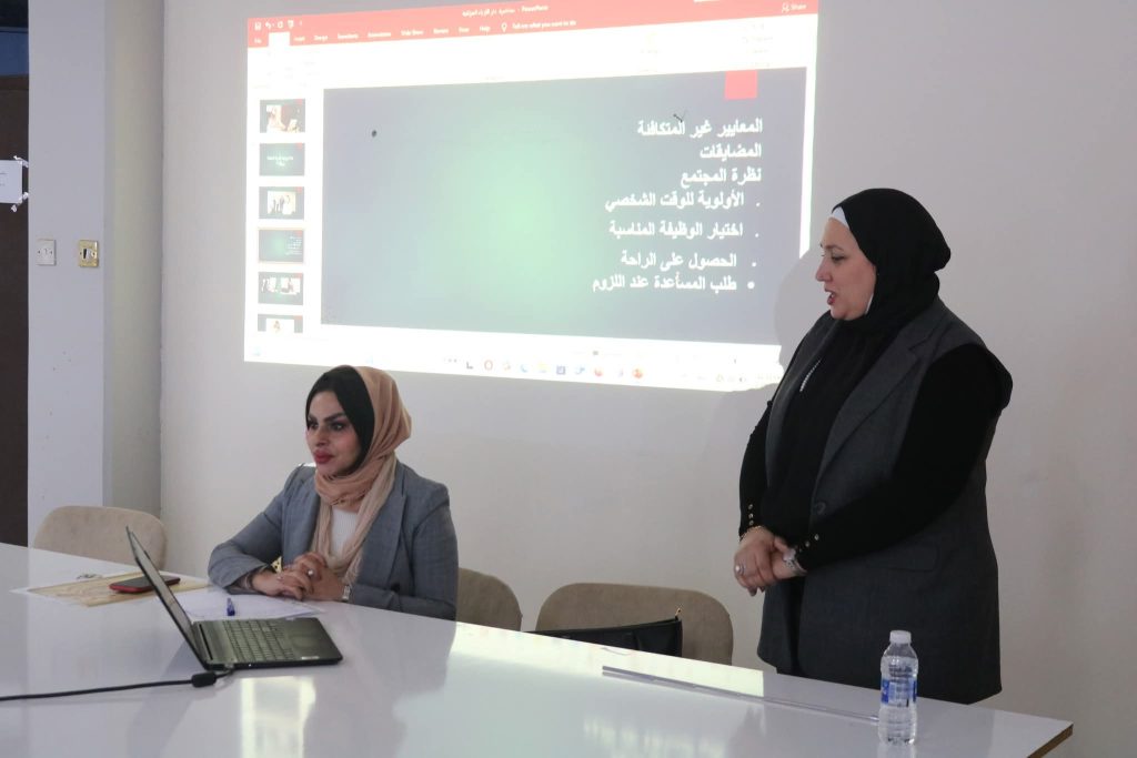 كما شهدت الجلسة مداخلة لمعـاون المدير العام للدار الأستاذ خضر حماد حسن، أكد فيها على أهمية دور البيئة الأسرية في توفير الدعم النفسي والمعنوي للمرأة العاملة، بما يسهم في تعزيز نجاحها واستقرارها المهني.