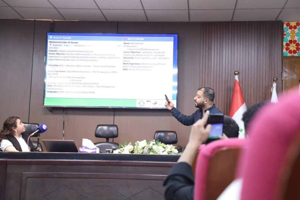 جامعة الكرخ للعلوم تقيم ورشة تدريبية بعنوان “تهيئة الخريجين لإعداد سيرة ذاتية احترافية وإعدادهم لمقابلة الشركات”