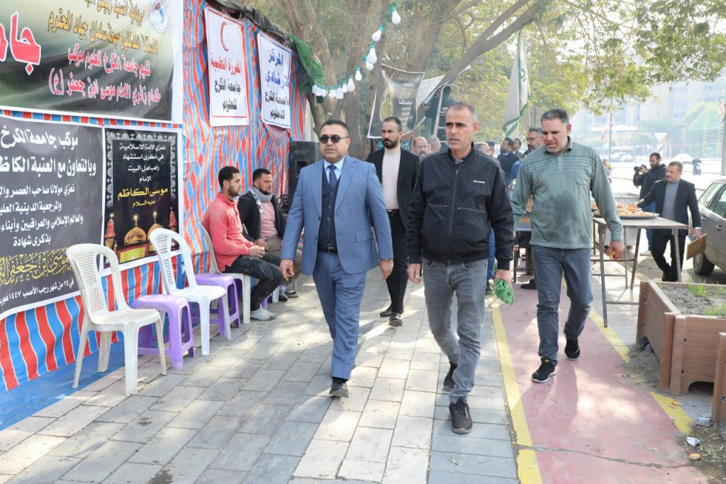 رئيس الجامعة يتفقد الموكب الخدمي الخاص بزيارة الإمام الكاظم (عليه السلام)