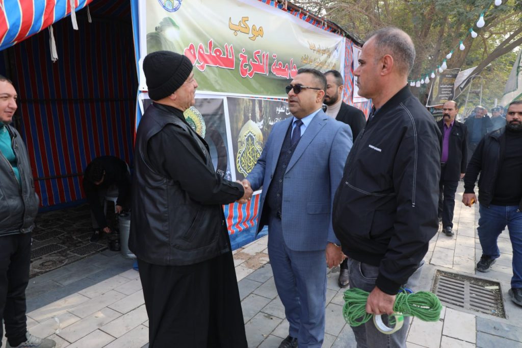 واطلع رئيس الجامعة خلال جولته على طبيعة الخدمات المقدمة للزائرين من قبل موكب الجامعة ، والتي شملت انشاء مفرزة طبية وشعبة الارشاد النفسي وتقديم وجبات الطعام والماء، إضافة إلى الخدمات اللوجستية والتنظيمية التي تسهم في توفير أجواء مريحة وآمنة للزائرين الكرام، مشيدًا بالجهود المبذولة من قبل الملاكات التدريسية والإدارية والطلبة المتطوعين المشاركين في هذا العمل الإنساني والخدمي.
