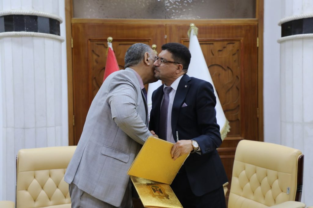برعاية وحضور رئيس جامعة الكرخ للعلوم الاستاذ الدكتور جمعة سلمان جياد ، وبغية تعزيز التعاون الأكاديمي والعلمي بين المؤسسات التعليمية في العراق، جرى يوم الاثنين الموافق (8/ 10/2025) توقيع اتفاقية توأمة وتعاون مشترك بين كلية علوم الطاقة والبيئة / جامعة الكرخ للعلوم، ممثلة بالسيد عميد الكلية الأستاذ الدكتور رائد نوفي حسان ، وكلية العراق الجامعة الاهلية ، ممثلة بالسيد عميد الكلية الأستاذ الدكتور جاسم محمد سلمان ، وبحضور مساعد رئيس جامعة الكرخ للشؤون العلمية أ.م.د ايهاب ناجي عباس.