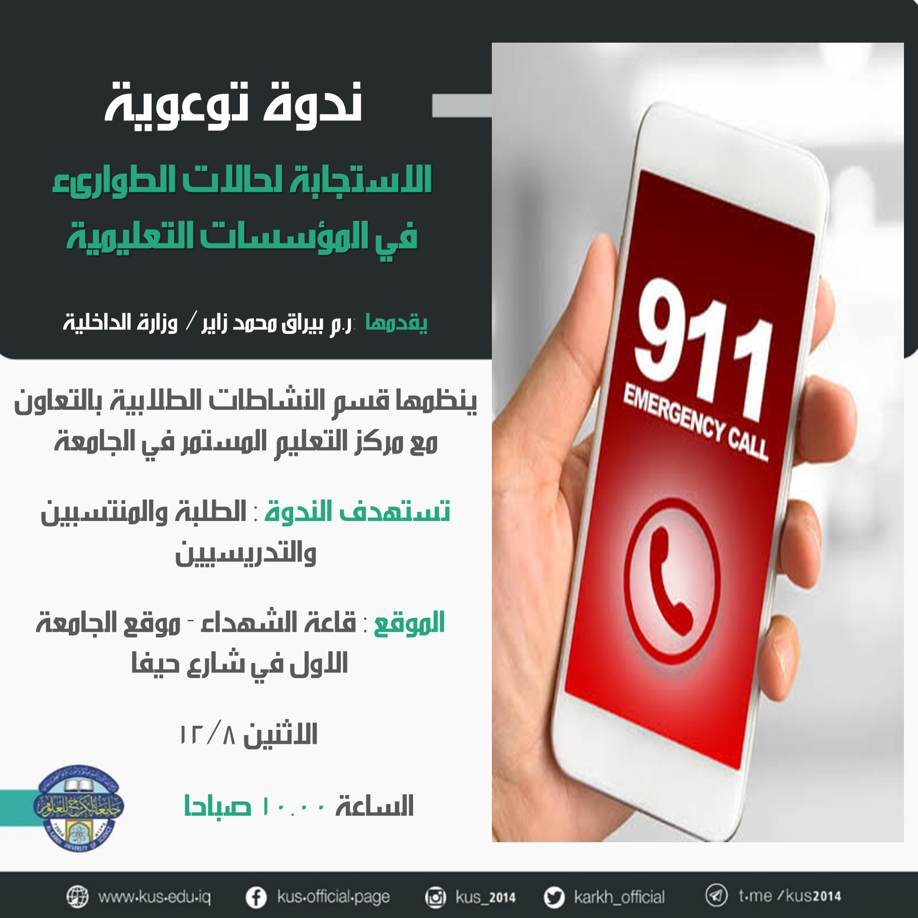 ندوة توعوية عن الاستجابة لحالات الطوارىء في المؤسسات التعليمية