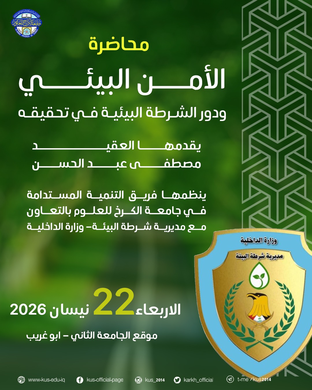 اعلان محاضرة في جامعة الكرخ للعلوم عن الامن البيئي ودور الشرطة البيئية في تحقيقه