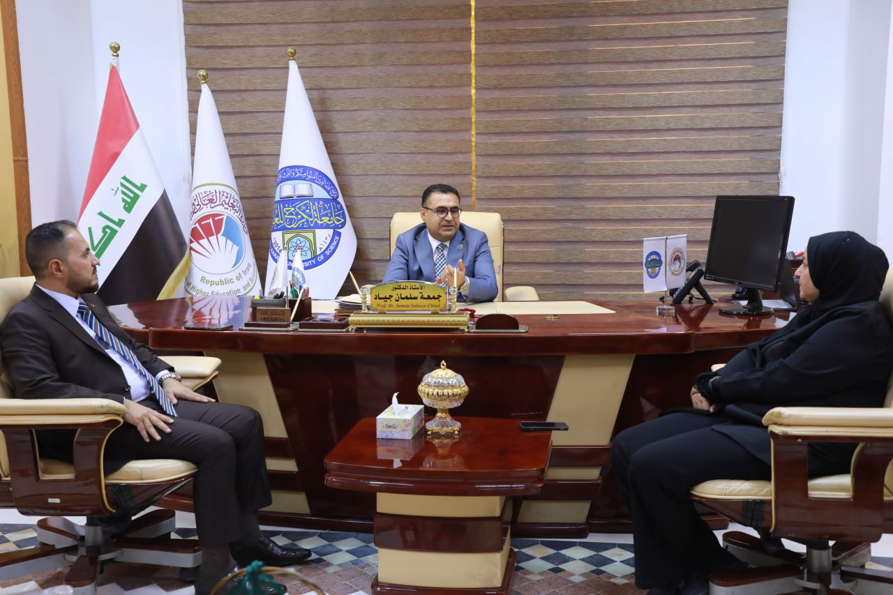 استقبل رئيس جامعة الكرخ للعلوم الأستاذ الدكتور جمعة سلمان جياد، في مكتبه، د. اسراء احمد محمد رئيس هيئة الرقابة المالية العاملة في جامعة الكرخ للعلوم، والوفد المرافق لها، وذلك في زيارة رسمية هدفت إلى تعزيز سبل التعاون المشترك بين الجامعة …