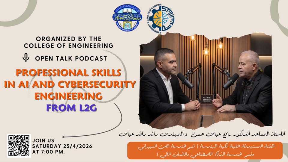 بودكاست علمي في كلية الهندسة يناقش مهارات سوق العمل لطلبة الذكاء الاصطناعي والأمن السيبراني