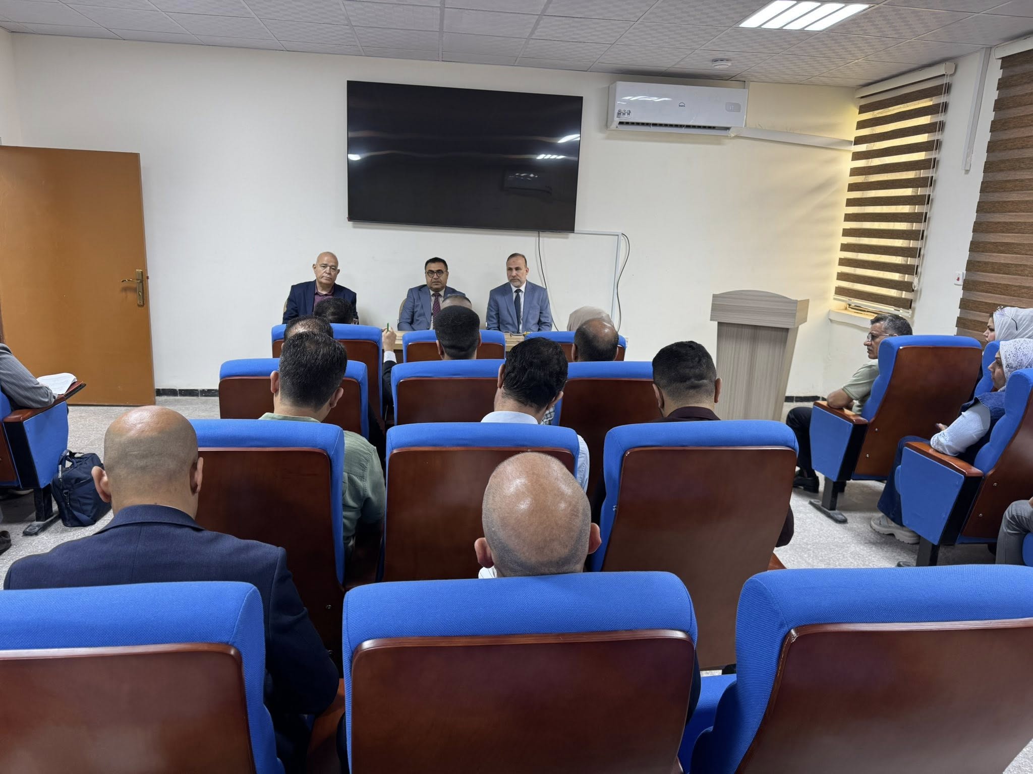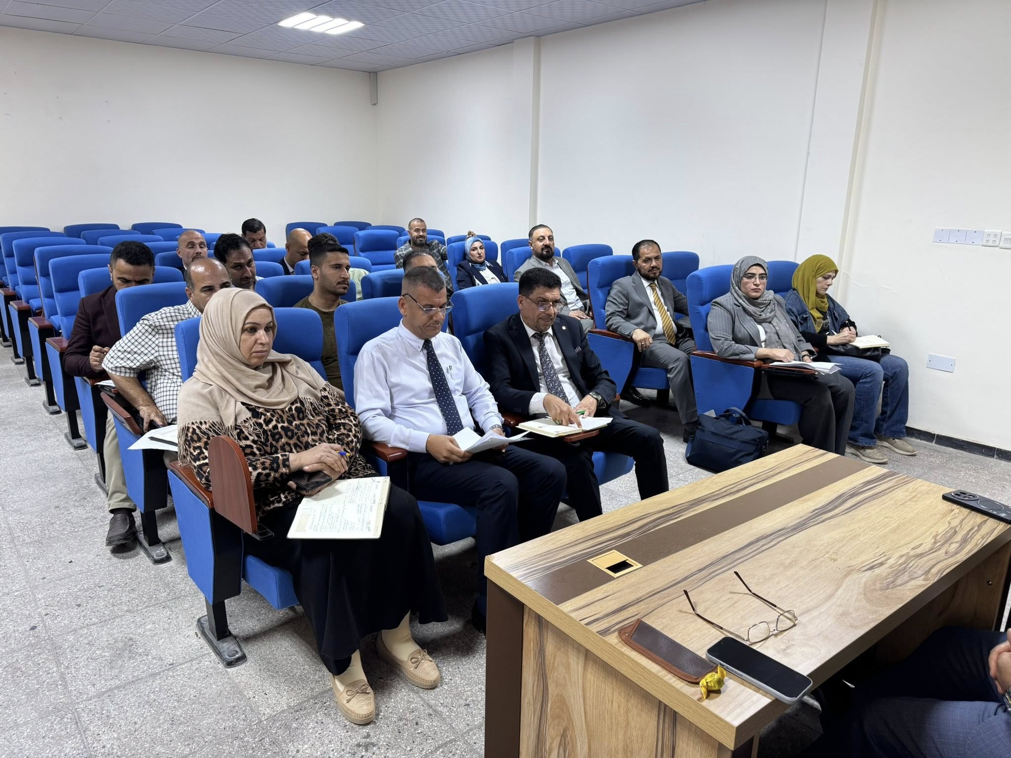 تم عقد اجتماع موسع للجنة المؤتمر العلمي الدولي العاشر لزيارة الاربعين لكافة لجان المؤتمر برعاية السيد رئيس جامعة الكرخ للعلوم الاستاذ الدكتور جمعة سلمان جياد المحترم/ رئيس المؤتمر والسيد مساعد رئيس الجامعة للشؤون العلمية الاستاذ الدكتور ايهاب ناجي عباس المحترم/ عضو اللجنة العليا للمؤتمر والسادة عمداء الكليات المحترمين والمعاونين العلميين ورؤساء الاقسام العلمية ومقرري اللجان العلمية للمؤتمر المحترمين، حيث جرى خلاله مناقشة سير الأعمال العلمية، واكد السيد رئيس المؤتمر على ضرورة توسيع القاعدة العلمية للمشاركة البحثية بما بتناسب وحجم المناسبة وعنوان المؤتمر بعدها استعرض السادة عمداء الكليات ومقرري المحاور ما تم انجازه كلا حسب محوره