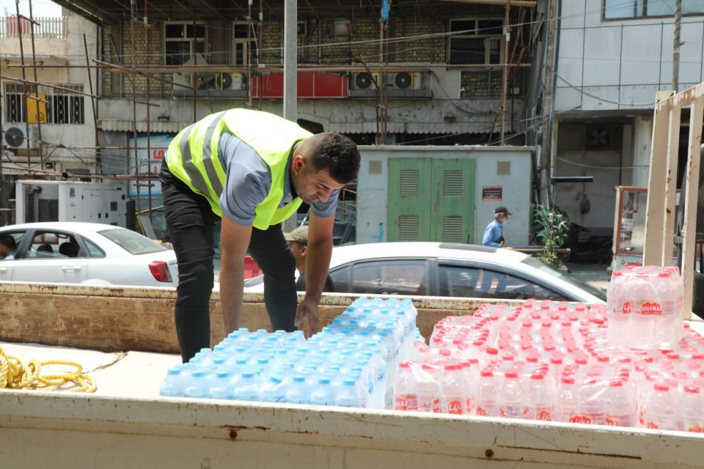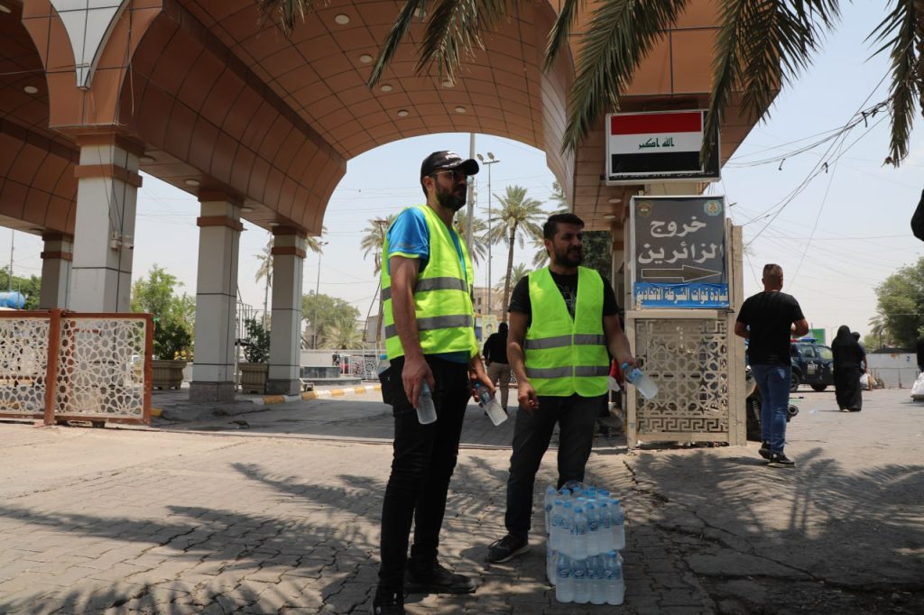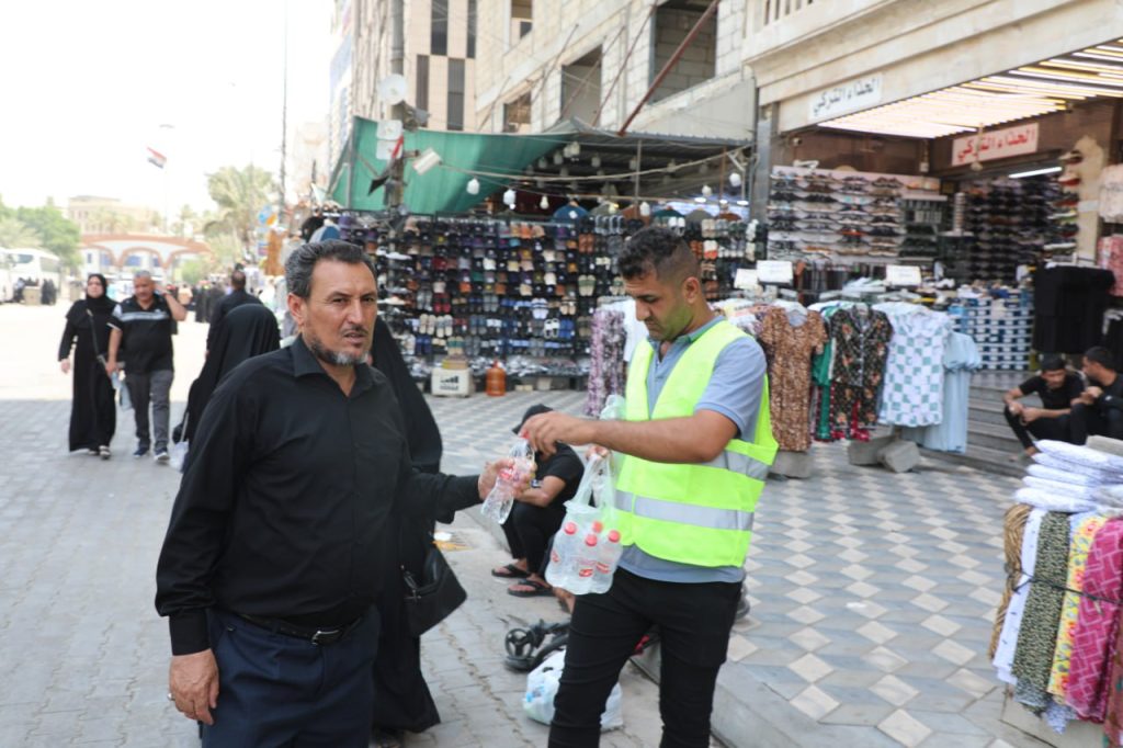 In light of its commitment to supporting pilgrims of Abu Abdullah Al-Hussein and the infallible Imams (peace be upon them), and considering the high temperatures during the pilgrimage season to the shrine of Imam Hussein (peace be upon him), Al-Karkh University of Science, under the guidance of the University President, Prof. Dr. Jumaa Salman Jiyad, and with the supervision and presence of the Directors of the Departments of Student Activities and Media & Government Communication, organized a humanitarian initiative.