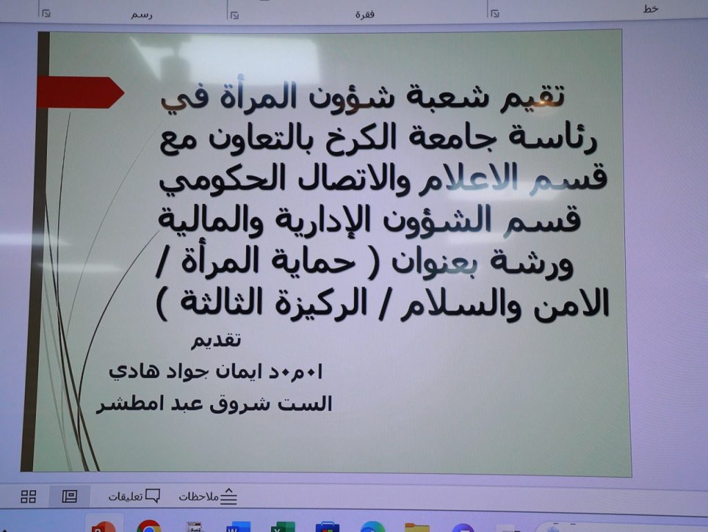 The Women’s Affairs Division at Al-Karkh University of Science, in cooperation with the Department of Media and Government Communication and the Department of Administrative and Financial Affairs, organized a workshop entitled: