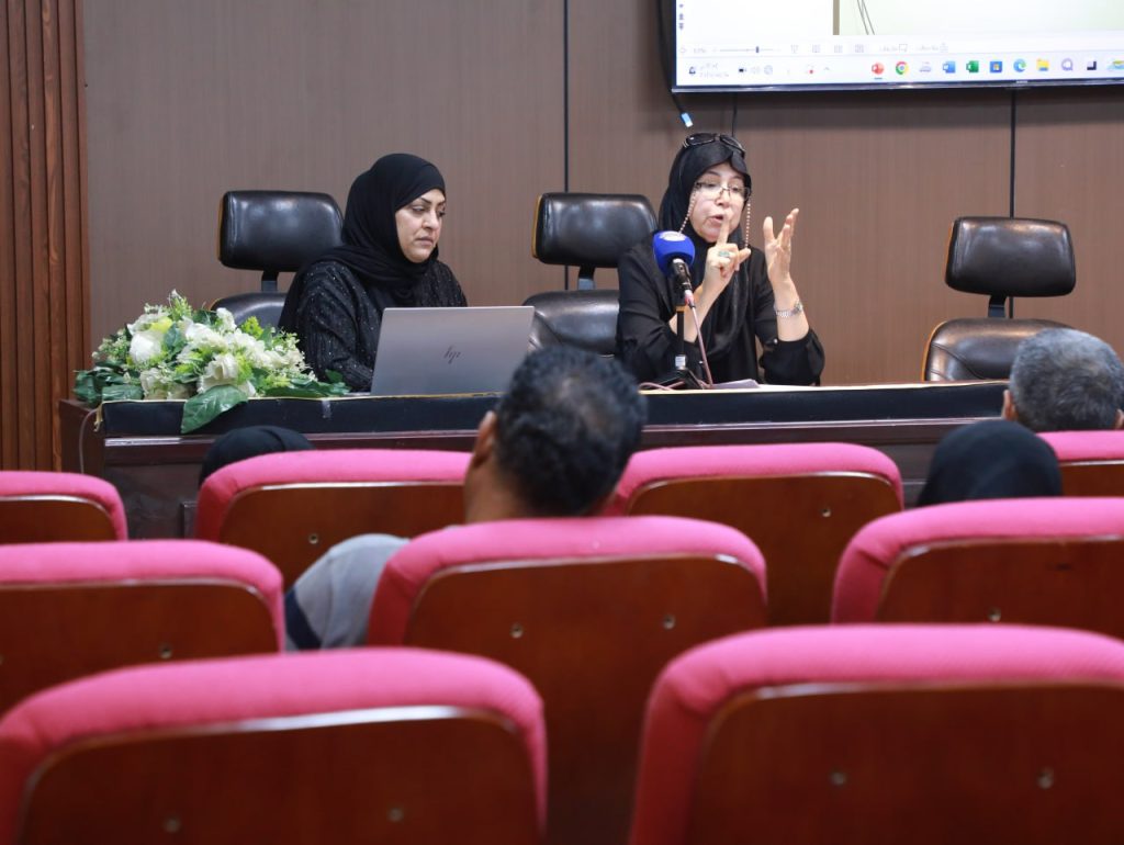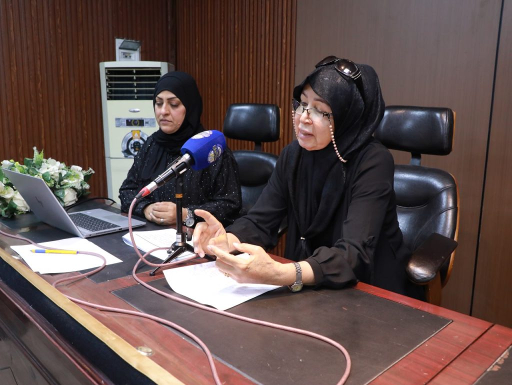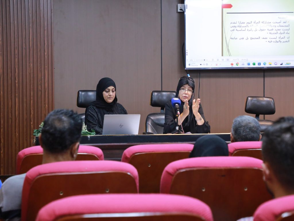 The workshop was delivered by Assoc. Prof. Dr. Iman Jawad Hadi from the Department of Media and Ms. Shurooq Abdul Mutashir, an employee in the Department of Administrative and Financial Affairs. Their lectures addressed several topics, including protecting women against violence, effective policies to combat it, human trafficking, as well as harassment and sexual assault.