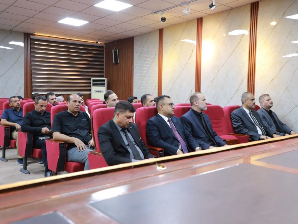 Amid an atmosphere filled with sorrow and faith, and under the patronage and presence of the President of Al-Karkh University of Science, Professor Dr. Jumaa Salman Jiyad, the university organized a mourning assembly for Imam Hussein (peace be upon him) on the occasion of the holy month of Muharram, with a large attendance of university staff.