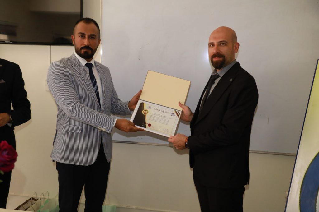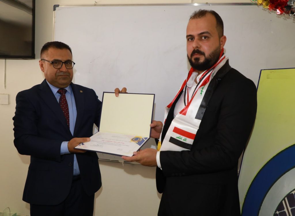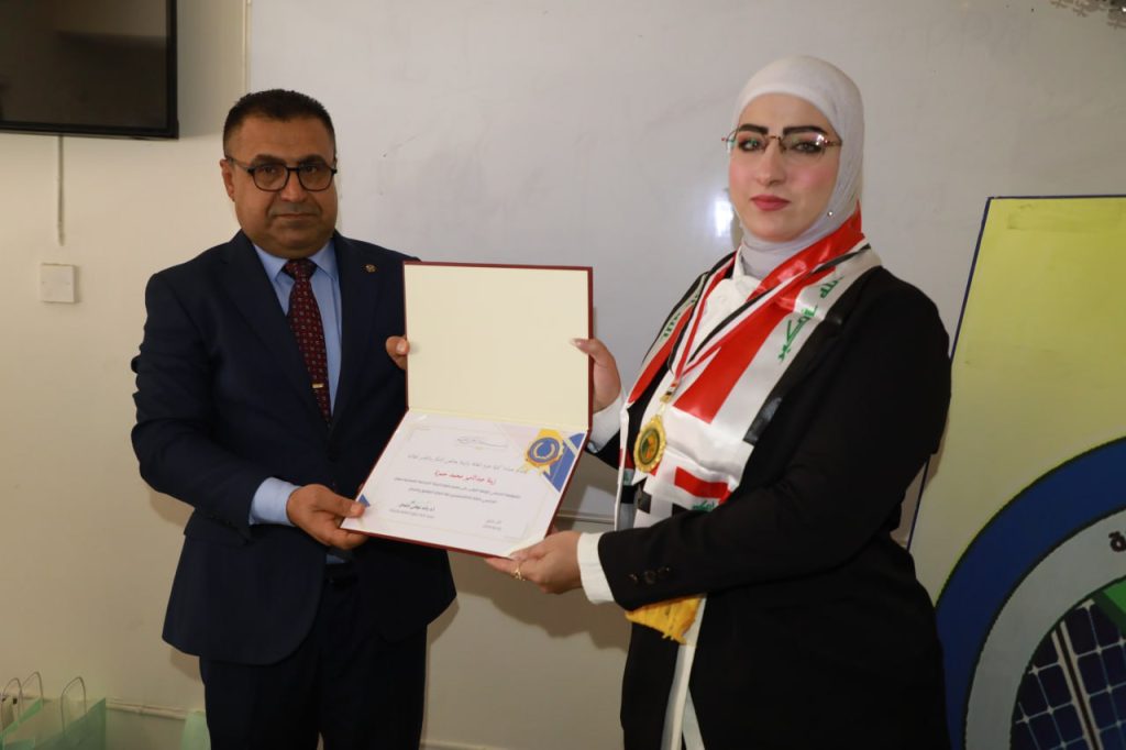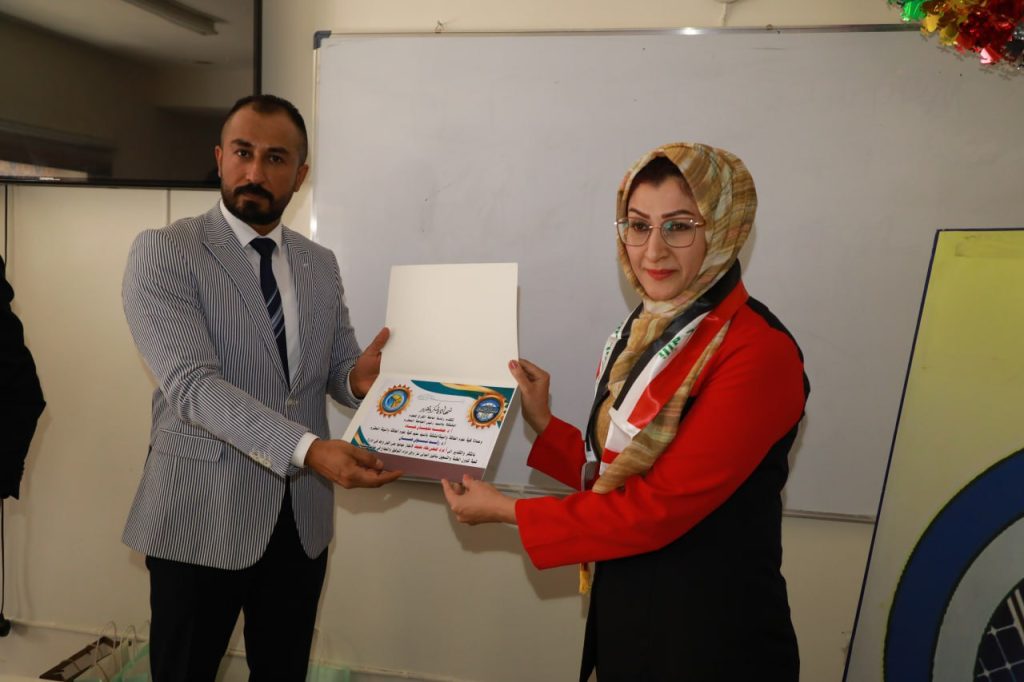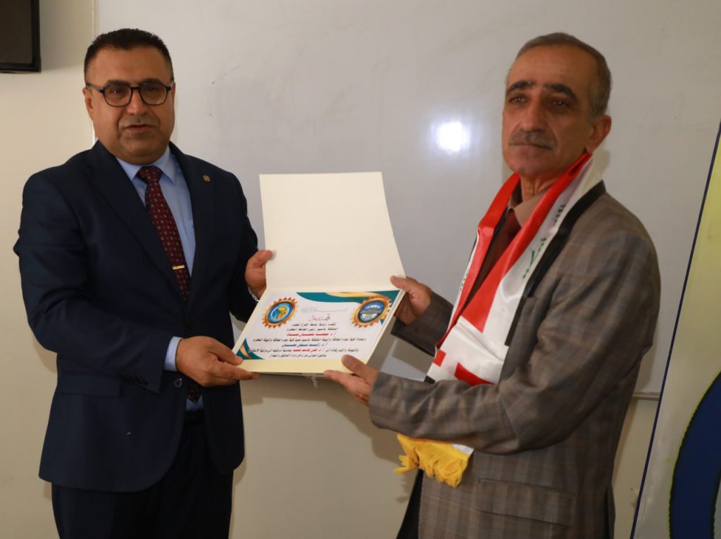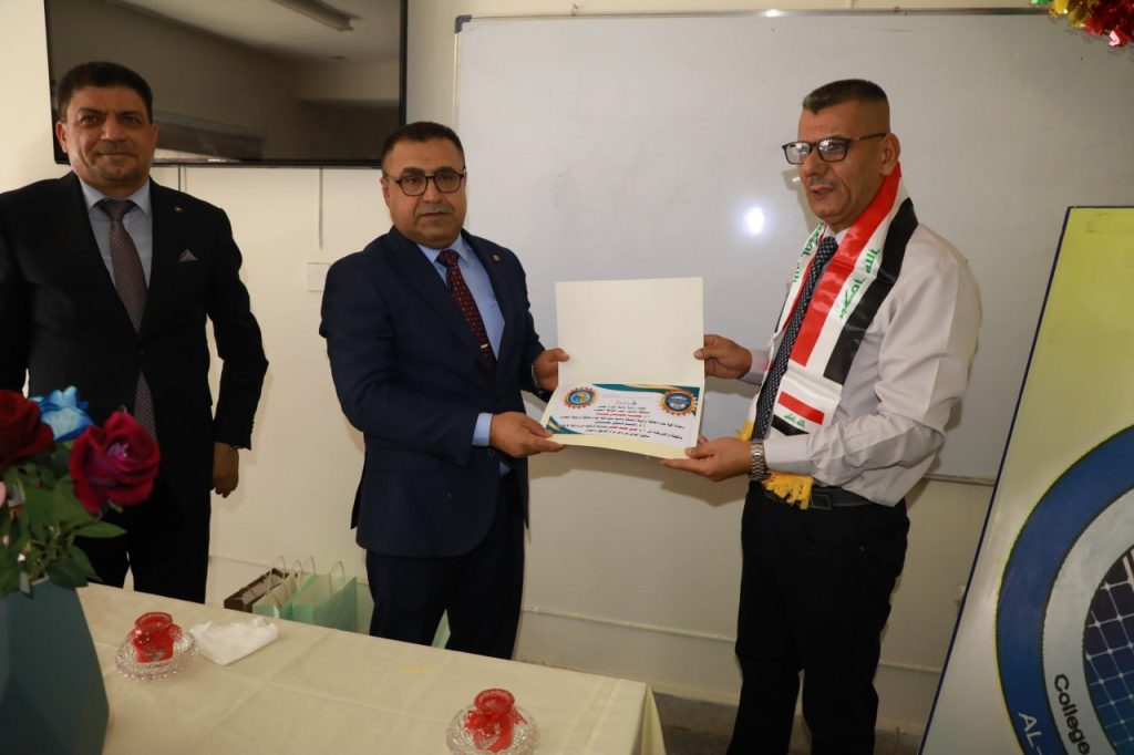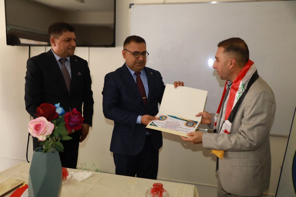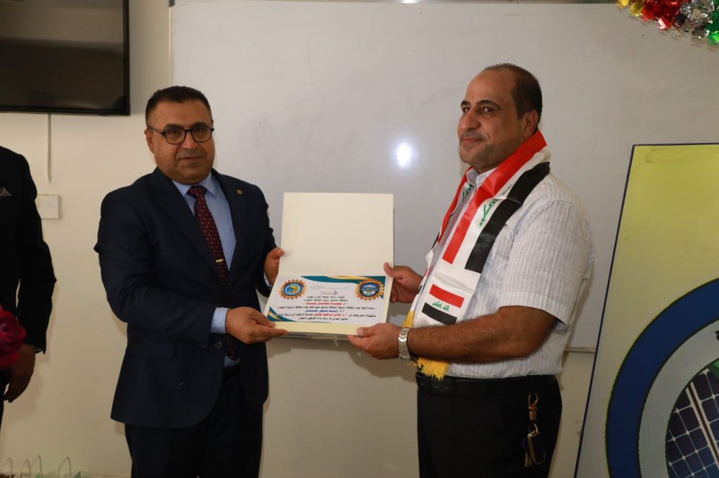 In a gesture of loyalty and appreciation, the Dean of the College of Energy and Environmental Sciences, Professor Raed Nofi Hassan, honored the University President, Professor Juma Salman Jiyad; the Assistant President for Administrative Affairs, Assistant Professor Hussein Zaboun Aliwi; and the Assistant President for Academic Affairs, Assistant Professor Ihab Naji Abbas. The honorees were recognized by the Prime Minister as one of the ten most distinguished and competent general managers. This recognition recognizes their prominent role in supporting the academic process, their continued commitment to developing the university’s colleges, and their efforts to create a learning environment that encourages creativity and innovation.