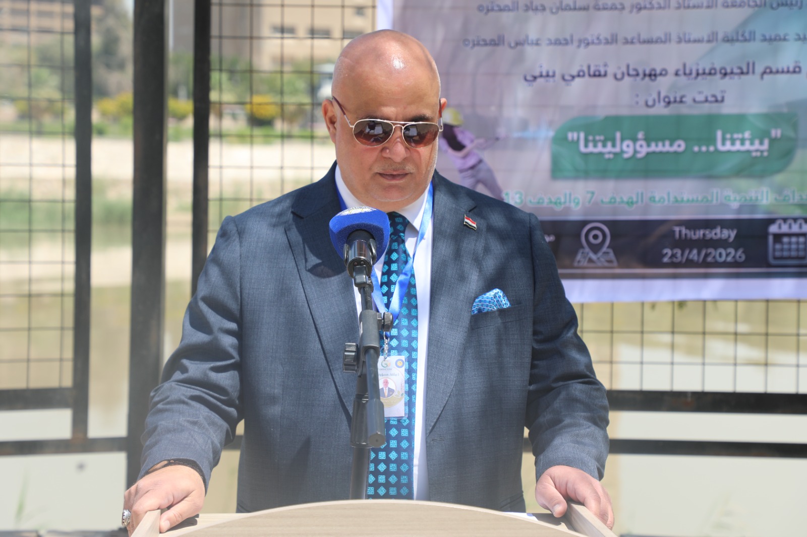 وألقى الكلمة الافتتاحية للمهرجان التدريسي في قسم الجيوفيزياء الدكتور فرات الموسوي، حيث أكد فيها أهمية تعزيز الوعي البيئي لدى الطلبة، ودور المؤسسات الأكاديمية في دعم التحول نحو الاستدامة ومواجهة التحديات البيئية.