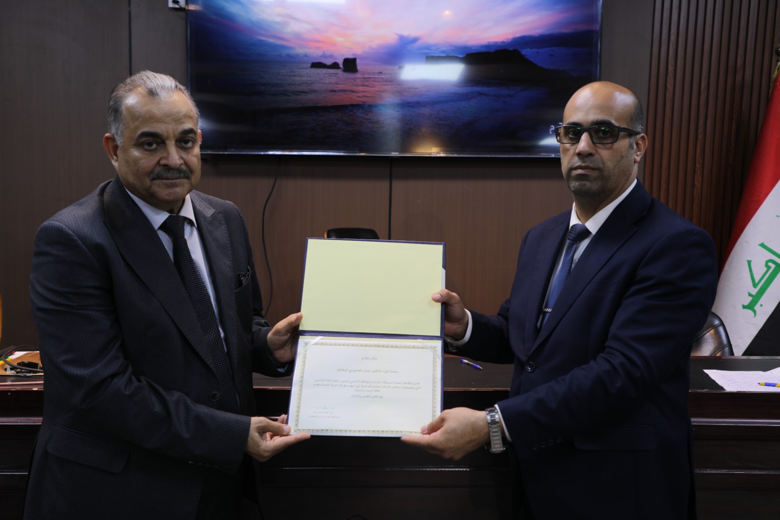وفي ختام الورشة، كرّم عميد كلية التحسس النائي والجيوفيزياء الأستاذ المساعد الدكتور أحمد عباس، المحاضر بشهادة تقديرية، تقديرًا لجهوده العلمية وعطائه المعرفي في تقديم هذه المحاضرة القيمة.