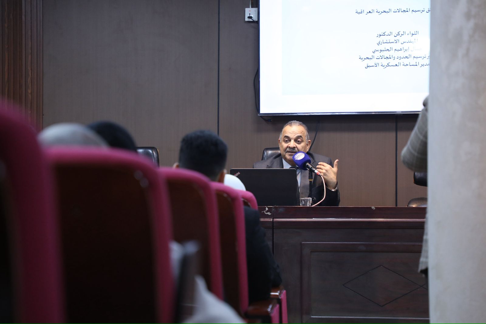 كما استعرض أبرز التحديات التي تواجه العراق في هذا المجال، والآليات المقترحة لمعالجتها بما يضمن الحفاظ على حقوقه البحرية للبلد.