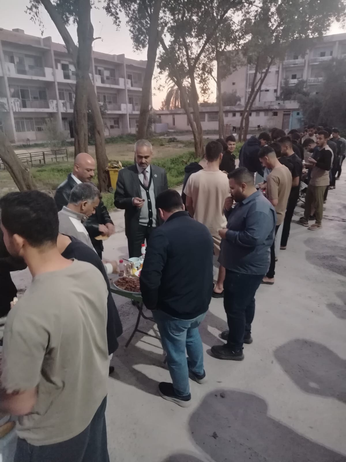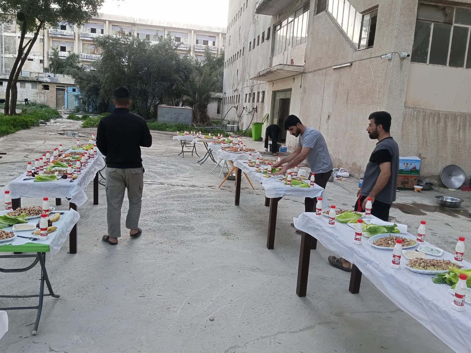 بناءً على توجيهات السيد رئيس الجامعة الأستاذ الدكتور جمعة سلمان جياد المحترم، وخلال شهر رمضان المبارك، وبرعاية مباشرة من عميد كلية العلوم الأستاذ الدكتور عدي هادي رؤوف المحترم، وبمتابعة السيد معاون العميد للشؤون الإدارية في كلية العلوم، وبإشراف مدير قسم شؤون الأقسام الداخلية، أُقيمت مأدبة إفطار جماعي لطلبة الأقسام الداخلية من الذكور والإناث، بحضور عدد من منتسبي كلية العلوم وبعض منتسبي الجامعة.