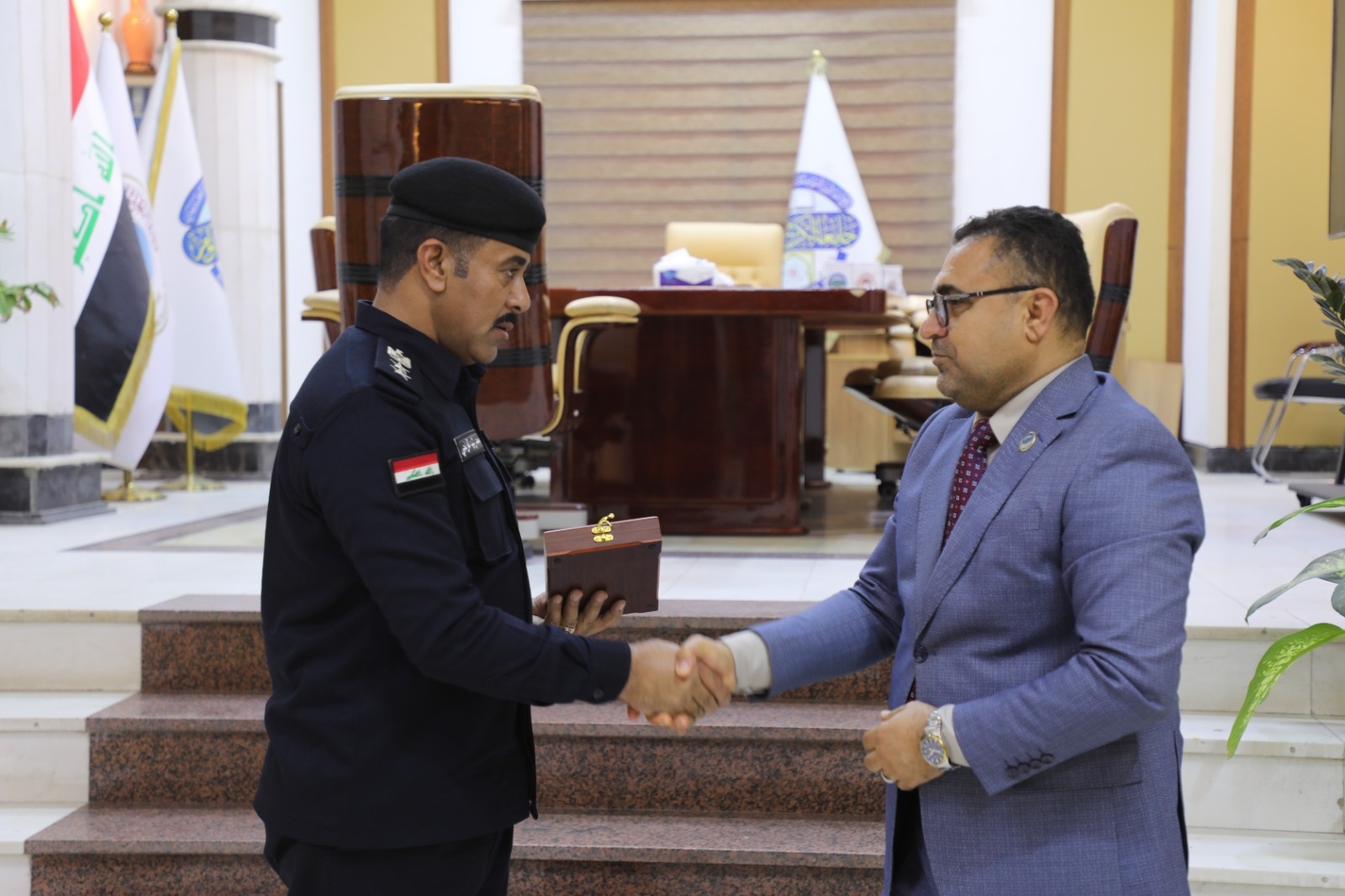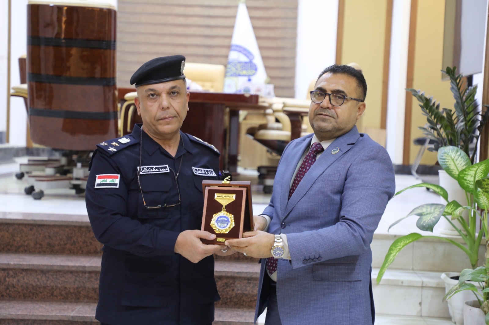 وفي ختام الزيارة، قدم رئيس جامعة الكرخ للعلوم درع الجامعة إلى رئيس وفد الشرطة المجتمعية، تقديراً لجهودهم المبذولة في خدمة المجتمع وتعزيز الأمن والاستقرار.