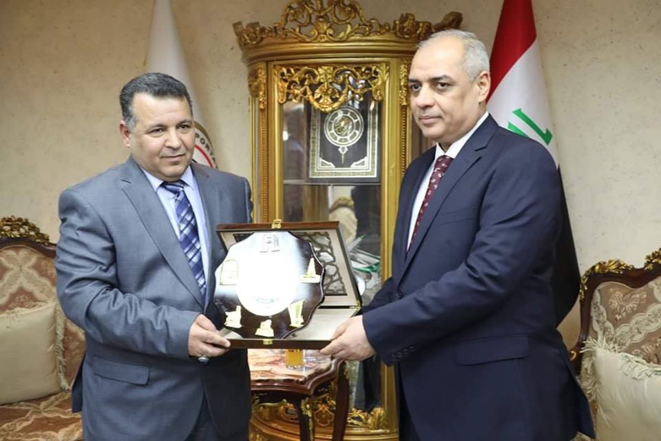 استقبل معالي وزير النقل المهندس عبد الله لعيبي باهض رئيس جامعة الكرخ للعلوم الاستاذ الدكتور ثامر عبد الامير حسن، بحضور السيد مساعد رئيس الجامعة للشؤون العلمية الدكتور لؤي كاظم عبود، والسيد عميد كلية التحسس النائي والجيوفيزياء والسيدة عميدة كلية علوم الطاقة والبيئة، والسيد مدير قسم الأعمار والمشاريع.