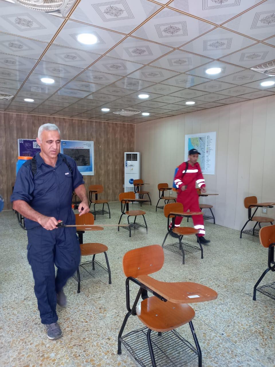 وأشرف سيادته على عمليات التعفير التي أقامتها الجامعة بالتعاون مع فريق الدفاع المدني للقاعات الدراسية والمختبرات وتأمين ومتابعة منظومة كاميرات المراقبة والتأكيد على جاهزيتها، وتجهيز اجهزة الحماية من الحرائق واجراءات السلامة في حفظ المواد القابلة للاشتعال وعدم حفظها في مكانات كرفانية والتنسيق مع دائرة الدفاع المدني القريبة من موقعي الجامعة.